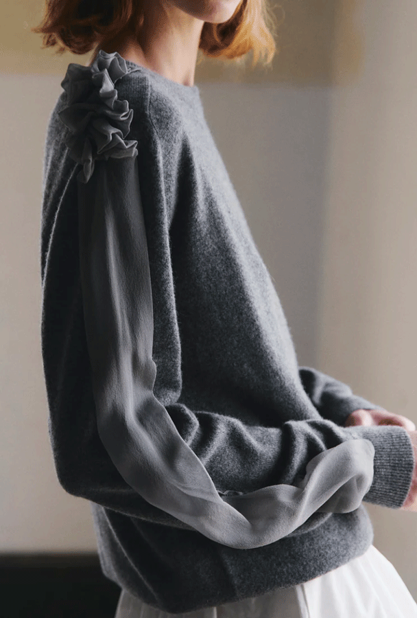 Capillary cashmere sweater with cinder chiffon, €785, Sphere One.