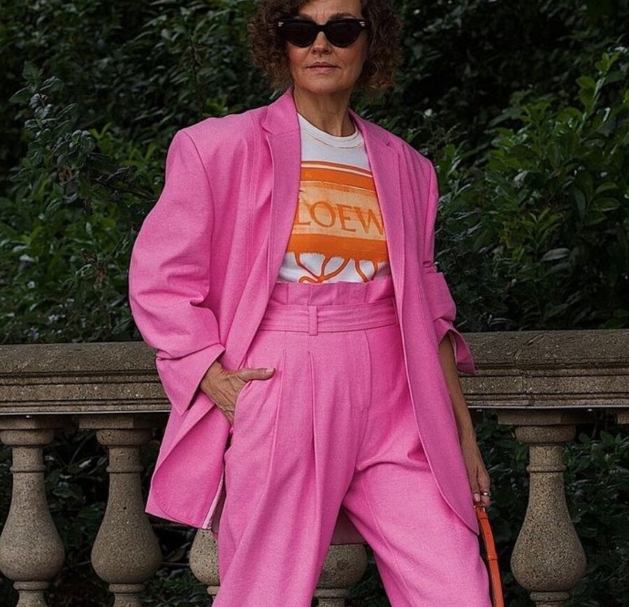 Wear a power suit with your favourite tee underneath. (Bonus points if your suiting nods to the Barbiecore trend.)