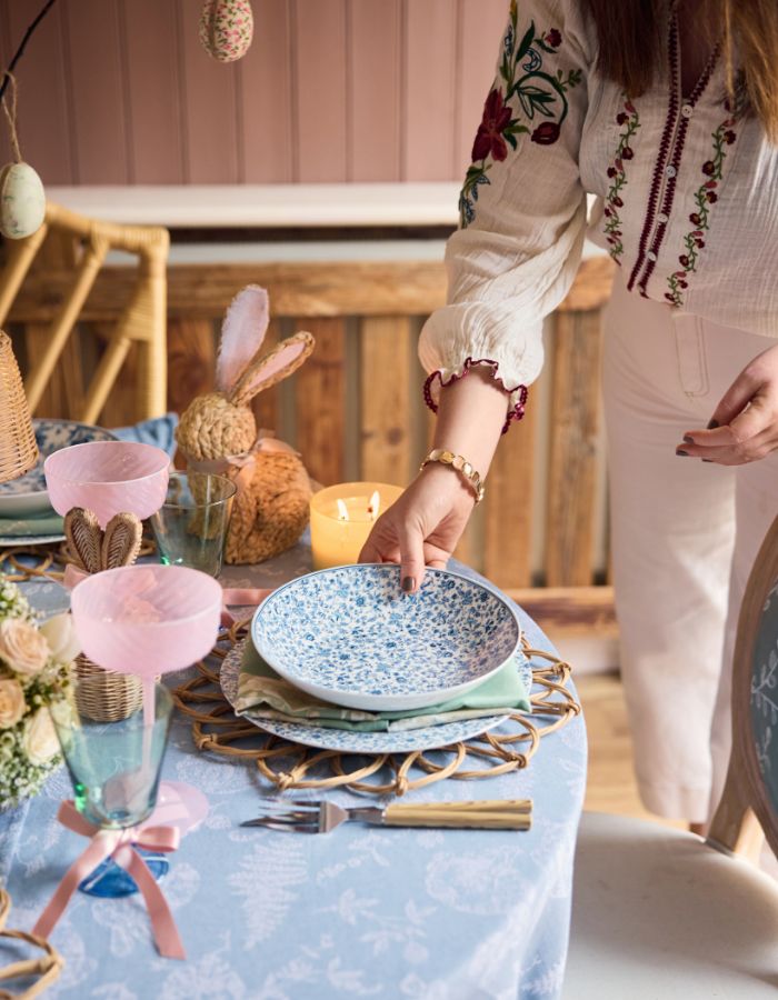 According to interior stylist Grace Cahill, “a beautiful plate, an interesting glass or a sculptural vase can completely transform a table.” Statement plates and glassware do the heavy lifting when layering a table as they instantly add texture and interest. Her go-to is TK Maxx for premium homeware at great value. @studiograce.ie
