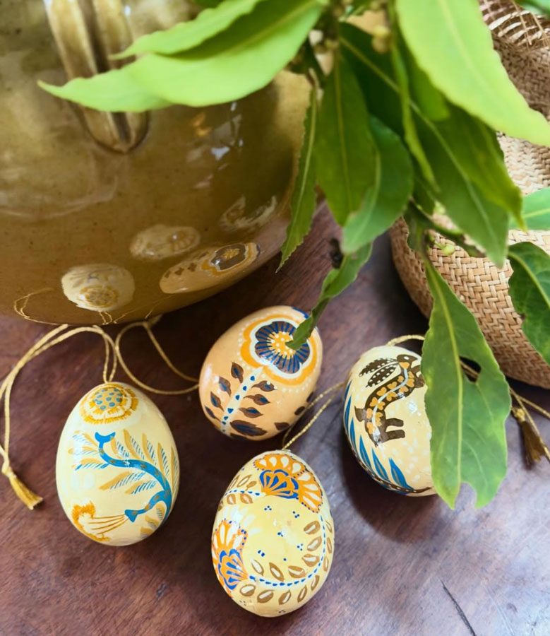 Rebecca Roe of Hedgeroe Home recommends grouping hand-painted eggs together like Russian dolls in a bowl to create a centrepiece that’s sure to be a conversation starter. @hedgeroehome