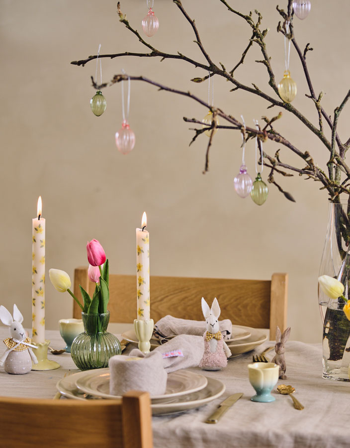 Create your own Easter tree by hanging delicate decorations from branches or blossoms. Søstrene Grene is a one-stop shop for furry bunnies, paper eggs and ceramic flower buds to add occasion to proceedings, without breaking the bank. @sostrenegrene