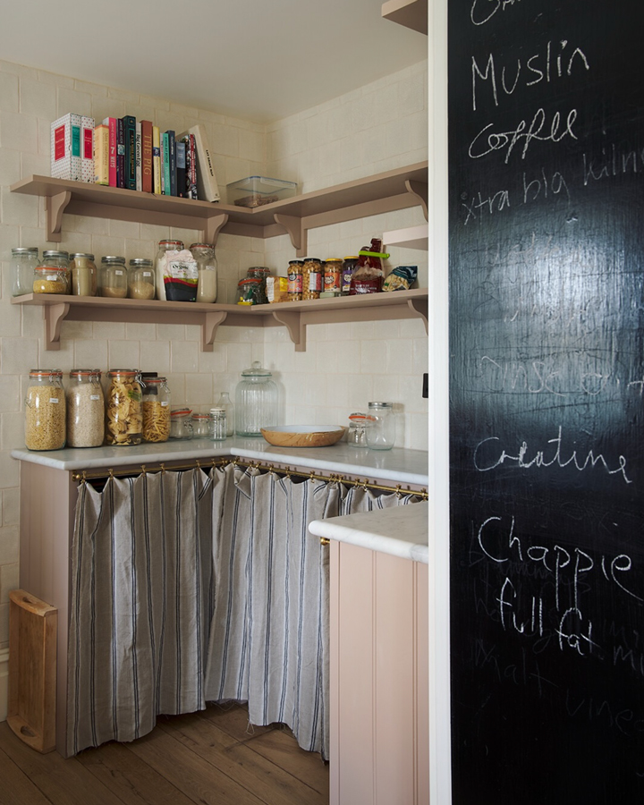 One of this year’s top trends that started with our grandparents is a traditional scullery or walk-in pantry that’s both practical and pretty, especially with a curtain to cover extra storage. One of the charms of pantries is their utilitarian beauty complete with Kilner jars, tins, books or bottles that are decoration in themselves. A chalkboard wall to leave messages or reminders is also more sustainable than a whiteboard or calendar. @devolkitchens