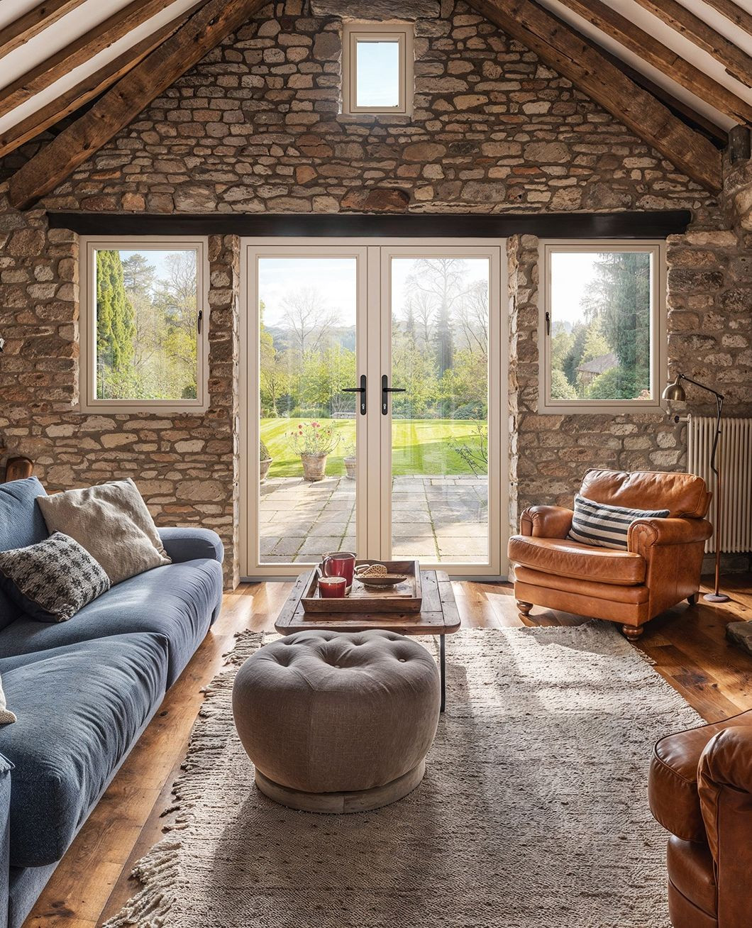 In an open-plan kitchen and living area, it goes without saying that well placed windows, patio doors and gloriously high ceilings light up any room. Exposed, distressed timber beams and a cleverly placed rug draw the eye to the garden beyond, but be warned … fingerprints from sticky grandkids or paw prints from mucky pooches are not granny approved! Forget the chemicals: nothing beats vinegar, newspaper and good old elbow grease. @fairco_windows