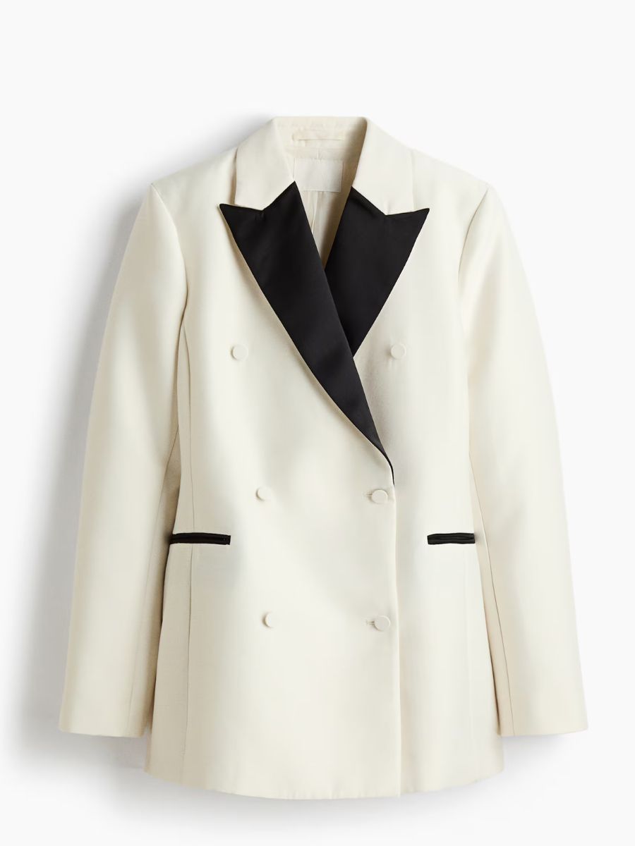 Cream blazer with black lapels, €69.99, at H&M.
