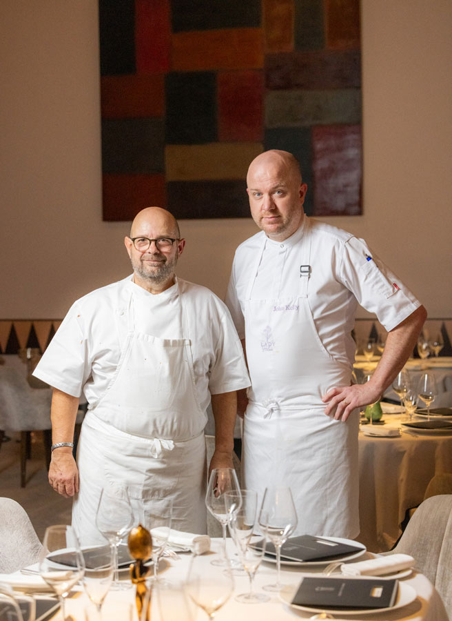 Following a successful collaboration earlier this year with executive head chef Guillaume Lebrun creating a rare menu with former apprentice, chef John Kelly at the Lady Helen restaurant at Mount Juliet Estate in Co Kilkenny, the master chef turned the tables and opened his kitchen doors for one night only on November 11 – the first time in Restaurant Patrick Guilbaud’s 44 year history.