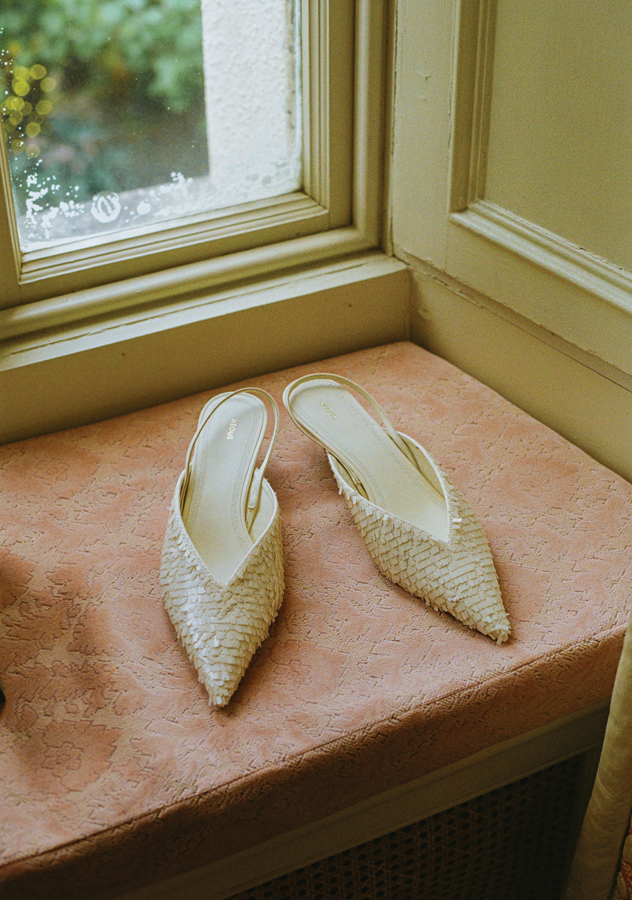 “My dress was from The Fall in Hackney, London. I wanted something I could dye afterwards to give it another day out, so this naturally narrowed down my choices in terms of styles. I’ve always loved a highneck silhouette and once I tried on this dress I could tell by my mum’s face that it was the one. I had my veil made by Martina Garner, who handsewed individual pieces of lace onto it. Killian bought a vintage tuxedo on eBay and had it tailored. I think we both wanted something elegant and timeless, so that when our future grandchildren look at our photos, they will still like our outfits!”