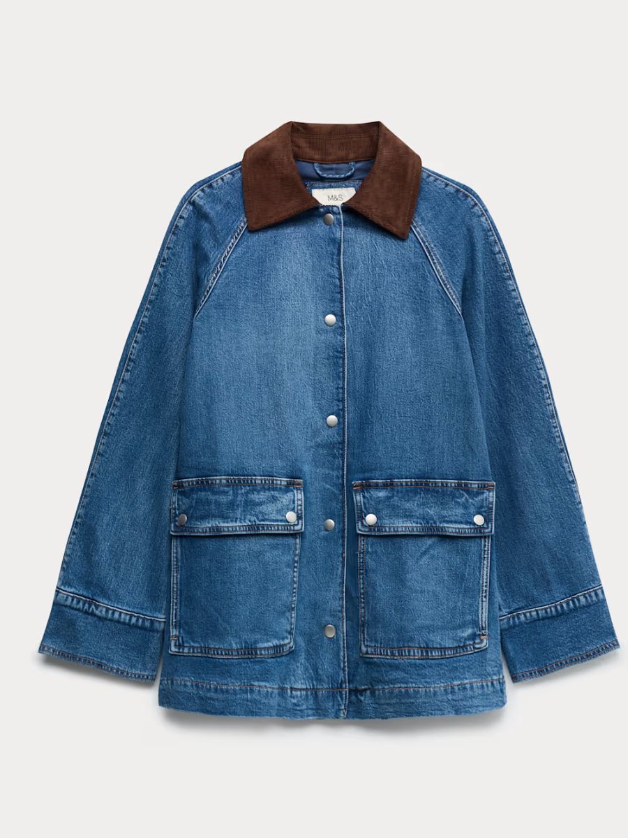 Indigo blue lyocell-blend barn jacket, M&S Collection, €85, at Marks & Spencer.