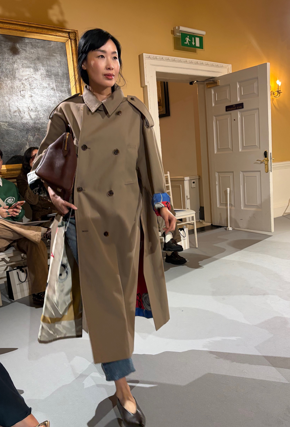 “My favourite look was definitely the Erdem elevated oversized denim coat,” says Contributing Editor Sarah Macken. “It was the simplicity of a barn jacket, with all of the crystal appliqué and embellishment added to it, that made it so beautiful and unexpected – I loved the high-low contrast, and the fact that it was styled with loafers and undone messy hair just added to that allure. It felt achievable, but also very aspirational. I also loved Chloe’s salmon pink blazer paired with flared jeans with a butter soft leather bag – it was a very refined version of attainable everyday dressing.”