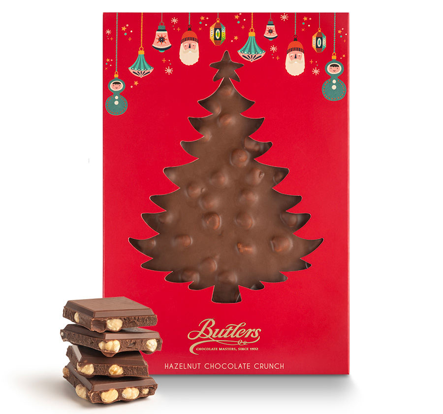 Christmas Hazelnut Chocolate Crunch Box: Pure indulgence crafted with rich milk chocolate, roasted hazelnuts, and crispy butterscotch pieces for a delightful crunch in every bite. Beautifully packaged for the festive season, it’s perfect for gifting or as a stocking filler.