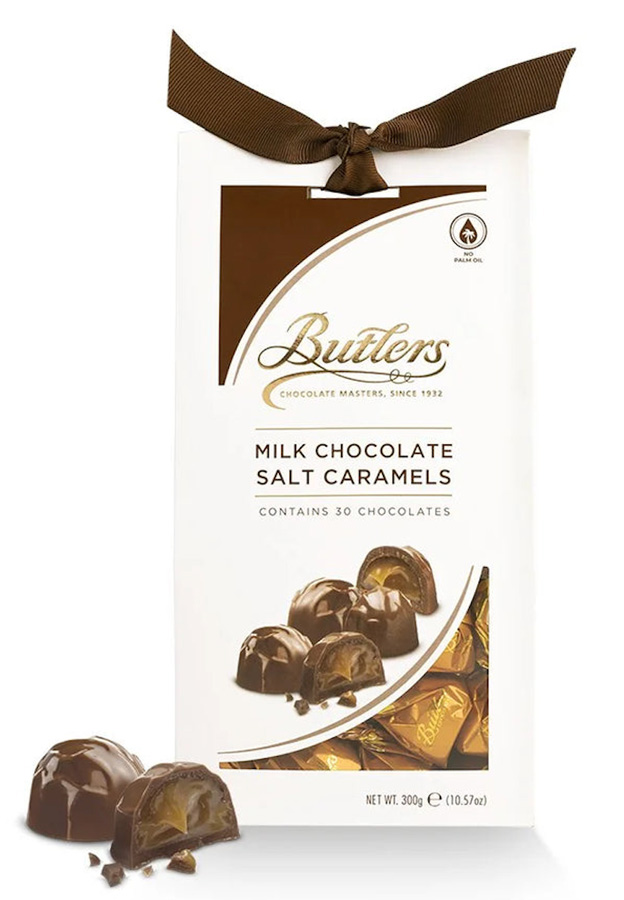 Milk Chocolate Salt Caramels: Butlers signature caramel with intense Irish Atlantic Sea Salt. A sweet symphony of oozing caramel made in the traditional artisan way infused with the fresh intensity of Irish Atlantic sea salt captured in milk chocolate. These 30 individually wrapped chocolates are presented in a striking tapered box with ribbon. Also available in Milk Chocolate, Honeycomb Crisp, Caramel, Salted Caramel, Hazelnut Praline, Pistachio Praline Crunch, Milk Truffle, 70% Truffle and more. Sharing is caring …