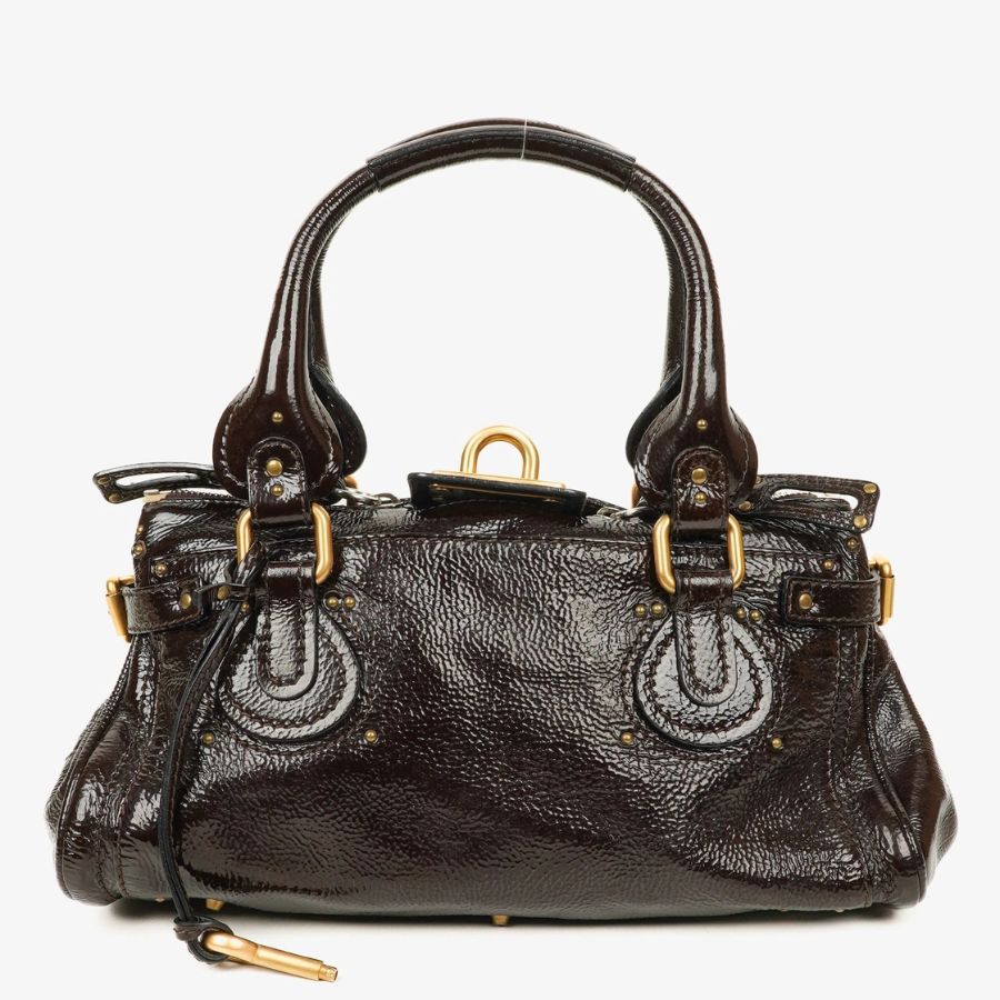 Dark brown Paddington patent leather satchel, Chloé, €305; www.ebay.ie.