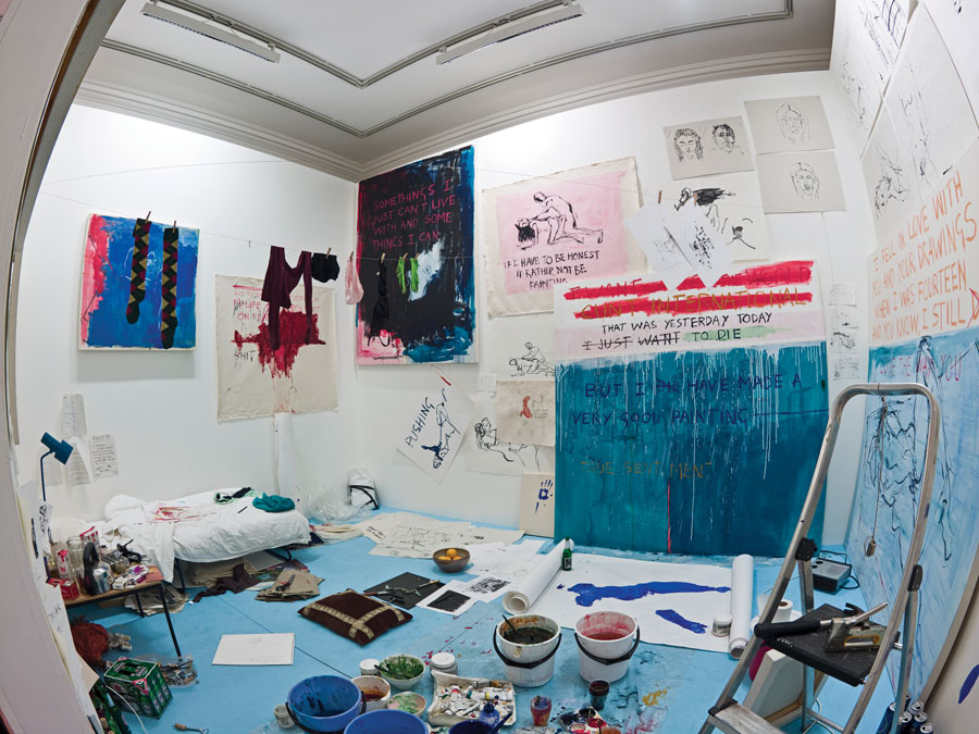 I expected Emin to be bonkers and bolshy, after all she was a key member of the shock-happy, sweary YBAs (Young British Artists) of the late 1980s which included Damien Hirst and Sarah Lucas. If fraught, tender, powerful and harrowing have been frequent descriptors of her work, then love, trauma and sex are its recurring themes, rendered as nudes, giant tapestries and installations like Everyone I Ever Slept With 1963-1995, a tent depicting 102 names, once owned by Charles Saatchi. “The most beautiful thing is honesty, even if it’s really painful to look at,” she believes. Her poetic neon lights, such as I Want My Time With You hang in London’s St Pancras Station and Florence’s arty Hotel Savoy.