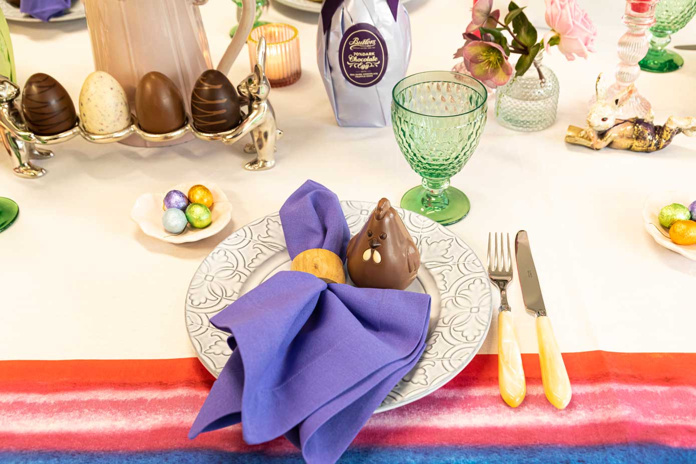 This seasonal setting is complemented with Butlers Dark and White Flame Wrapped Eggs, with a cute Butlers Chocolate Chick at each place setting and a selection of mini foiled eggs to adorn this festive table.