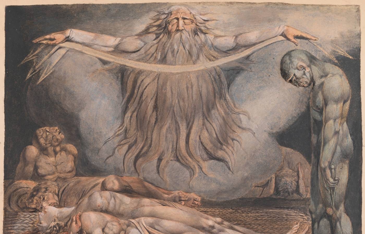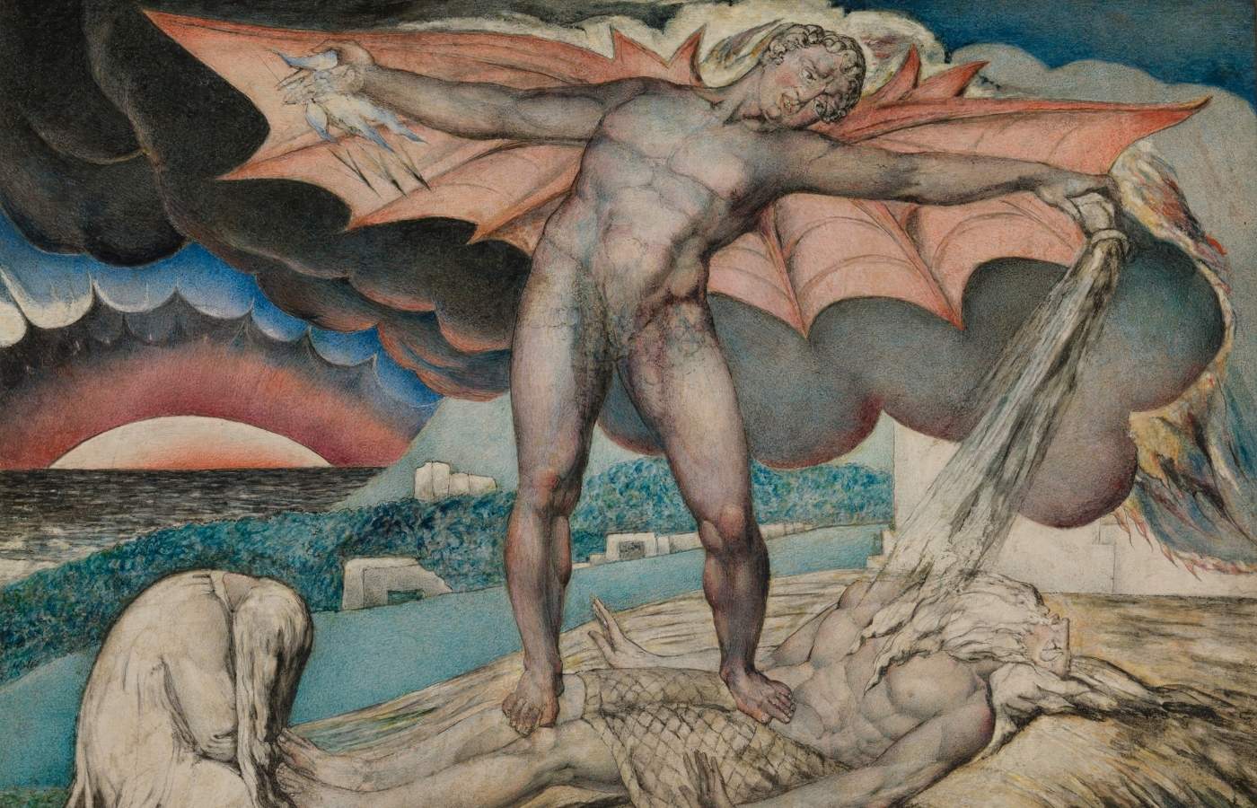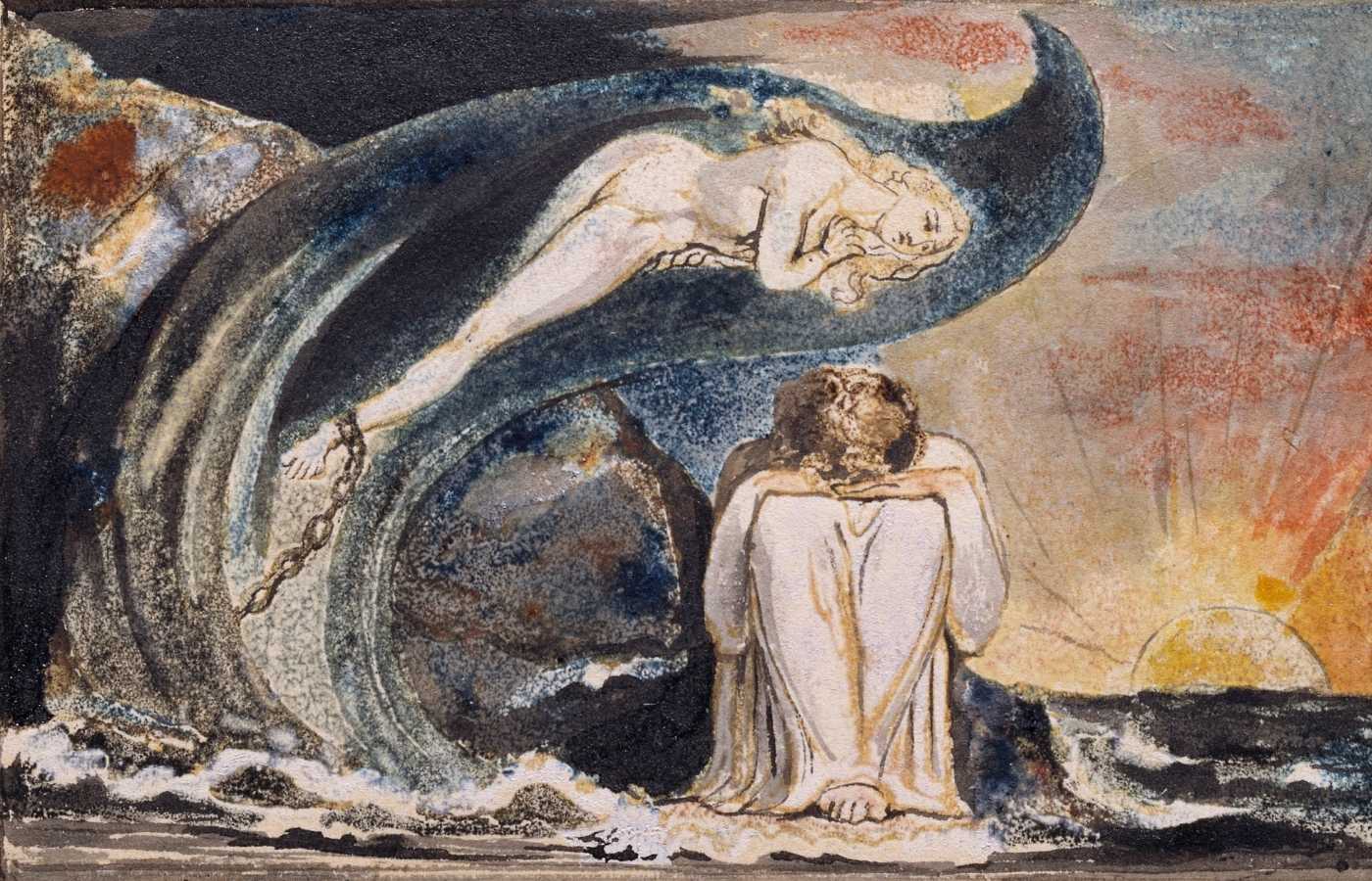 Blake’s work is unlike any other artist’s before or since his time. Although he used a wide variety of media, including watercolour print and tempera, line was always key for him. His works feature strange creatures conjured up from his imagination, alongside characters drawn from the Bible and literature. They feature strong contours, rich colours and exaggerated expression.