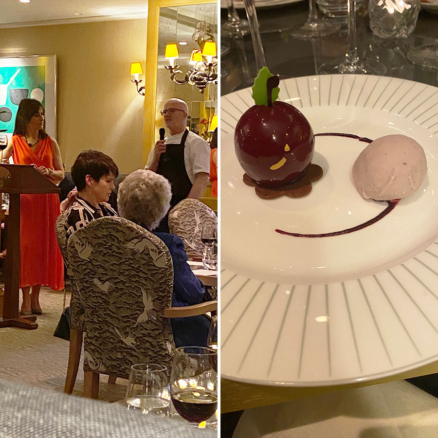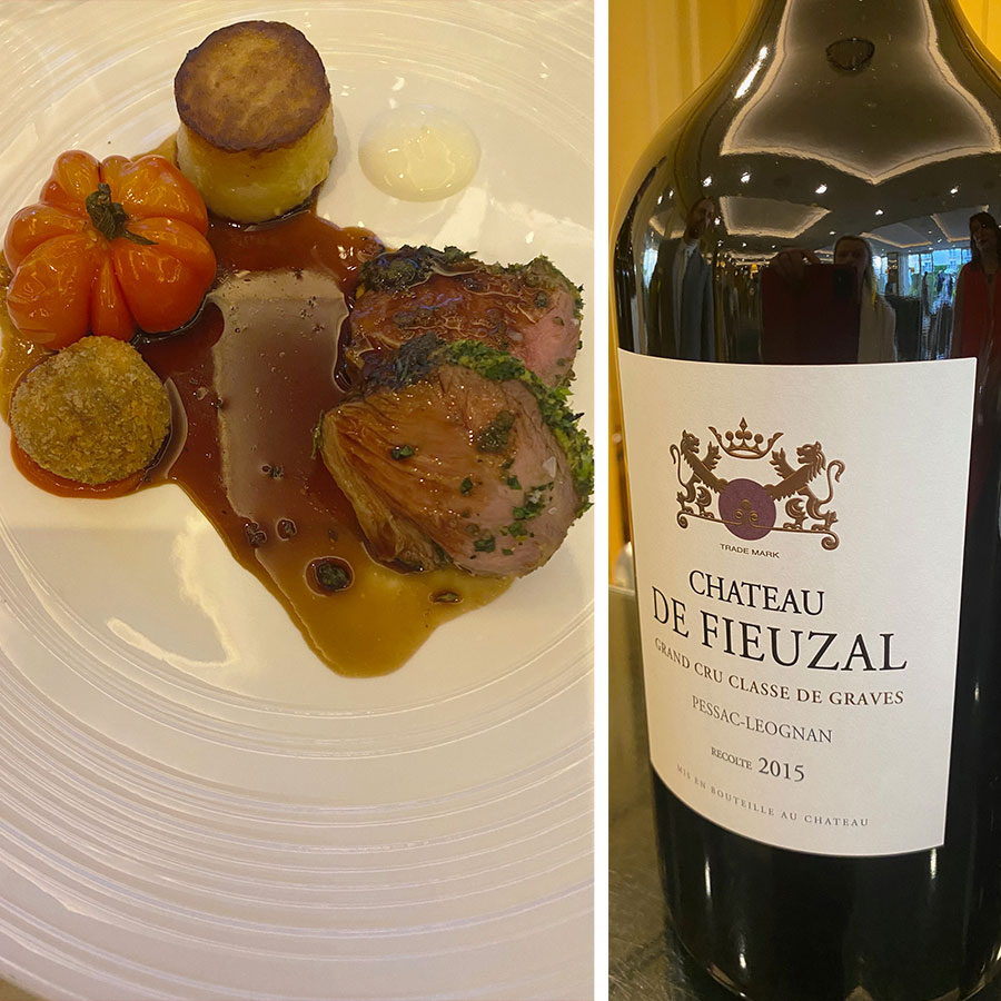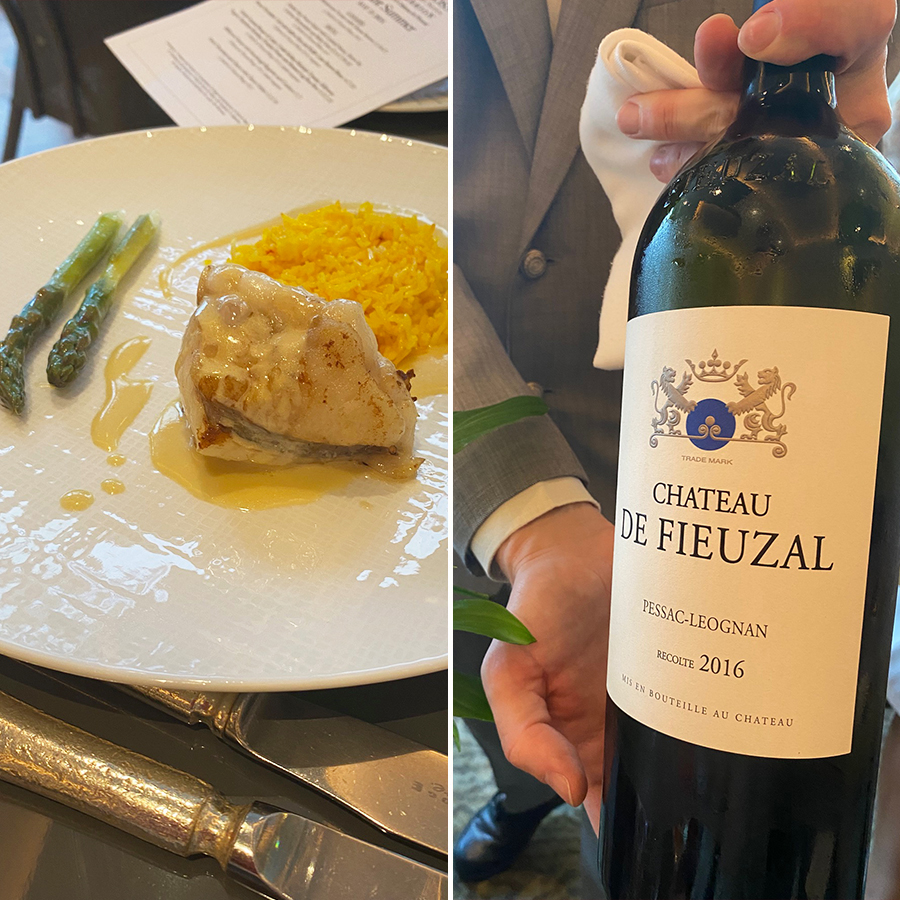 After Roast Monkfish Tail was served with a wonderful Château de Fieuzal Blanc 2016 (from magnums), Julie explained that the Fieuzal vineyard, protected by 30 hectares of forest and hedgerows, has 74 individual plots containing six grape varieties, which are picked by hand and assembled and blended in different combinations. As well as French oak barrels, Fieuzal ages some of the wines in acacia wood barrels, which balances and mellows the wine. Gravel stones, that give the Graves appellation its name, infuse the roots of the Fieuzal vines with a rich minerality, without affecting their vibrant freshness.