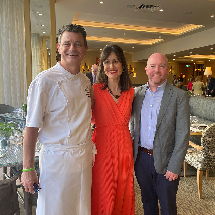 Dinner culminated in an exquisite dessert. The Dark Chocolate and Cherry with Cherry Gelato, conceived and introduced by Pastry Chef of The Merrion, Paul Kelly, was created to pair beautifully with L’Abeille de Fieuzal Rouge 2022, which is almost half and half Cabernet Sauvignon and Merlot, with five per cent Petit Verdot, a traditional Bordeaux red wine grape which adds colour and flavour. Paul Kelly explained how The Merrion has developed its own unique chocolate, having developed a unique cacao profile with world-renowned Paris institute Cacoa Barry. This pairing was extraordinary, perfectly demonstrating the joy of specificity, and expertise, in both cuisine and fine wine-making.