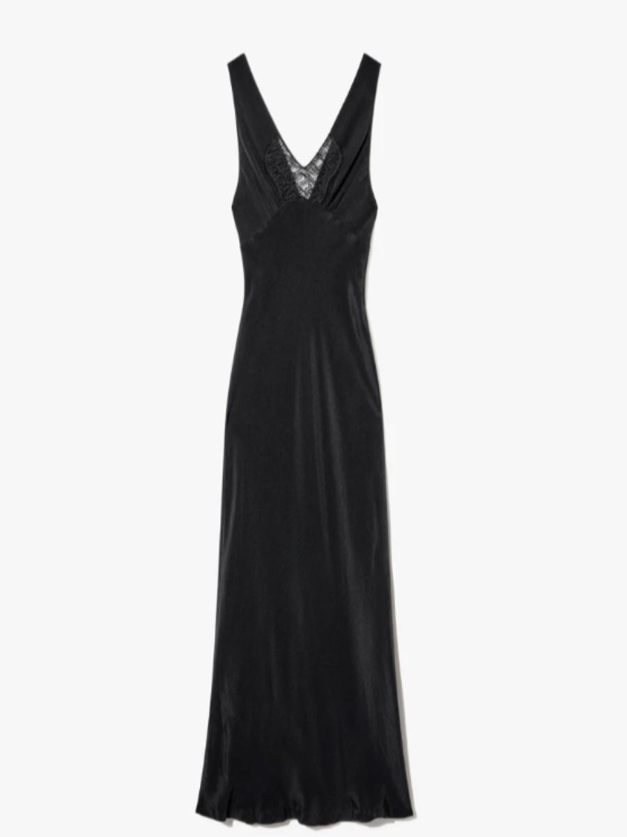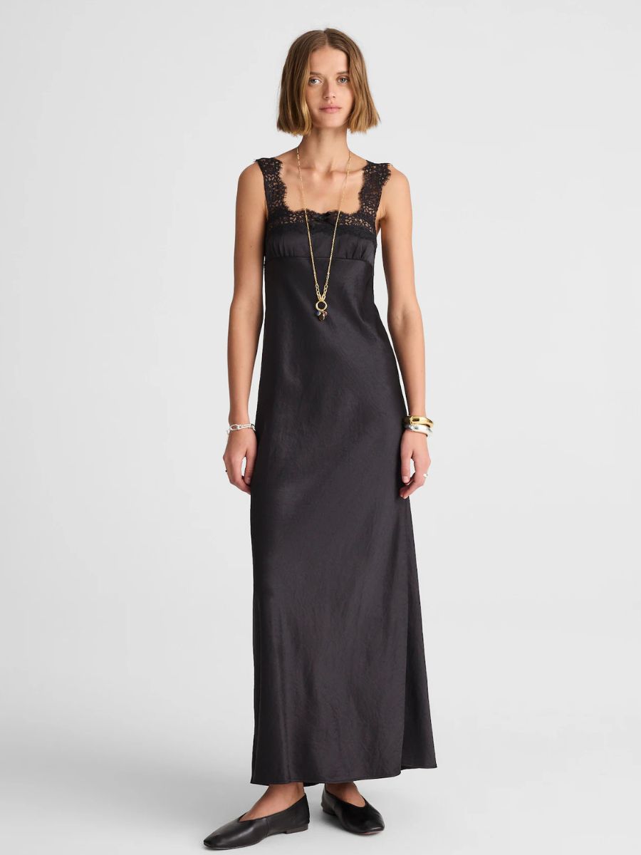 Black lace-detail recycled polyester slip dress, Alexa Chung for Madewell, €283; www.madewell.com.