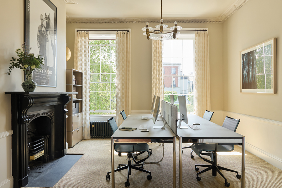 The drawing office overlooks the street. The tables by USM and chairs by Alias are from Minima.