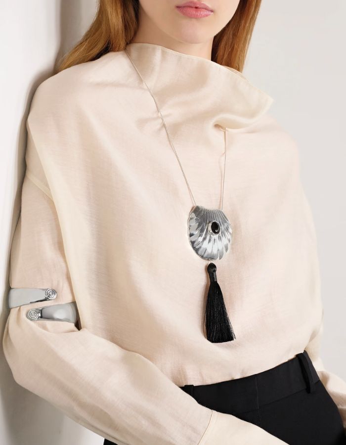 STATEMENT NECKLACES: Long vintage-style pendants are back. See Juju Vera or Sophie Buhai. Image; Net-A-Porter.