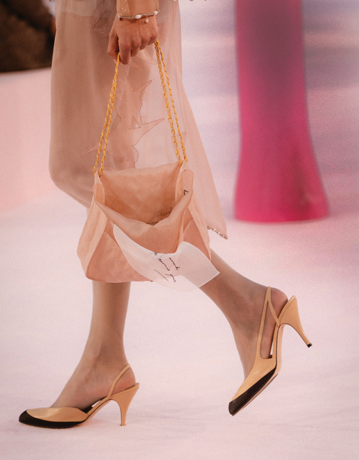 SHEER MADNESS: At Chanel’s Haute Couture show, sheer organza floated down the runway, with bags containing embroidered love letters from the models to designer Matthieu Blazy.