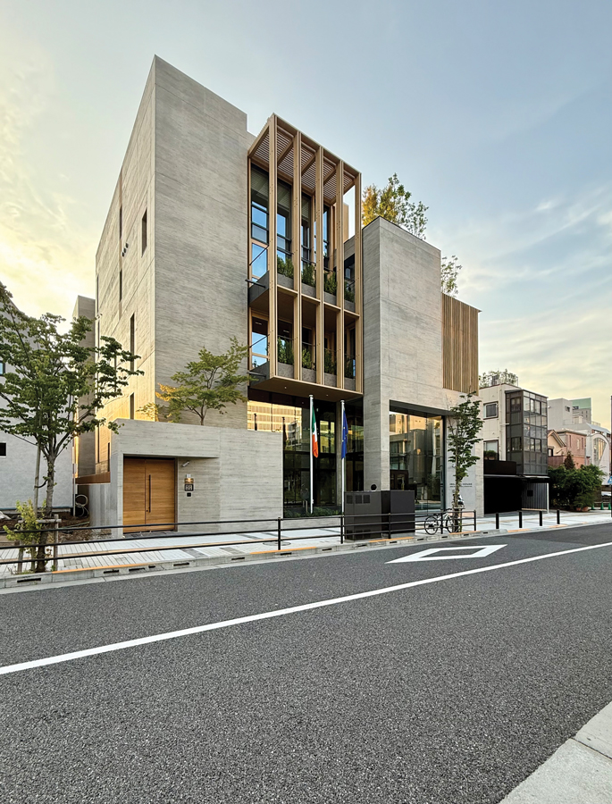 An RIAI and Department of Foreign Affairs competition to design Ireland’s new embassy in Japan, Ireland House Tokyo, was won by Henry J Lyons Architects in 2019. The new building accommodates the Embassy and official residence, as well as offices for a growing number of Irish state agencies and a performance space. Ireland House Tokyo is expected to raise Ireland’s profile in Japan.