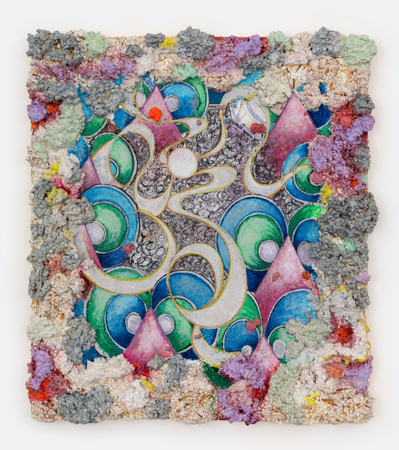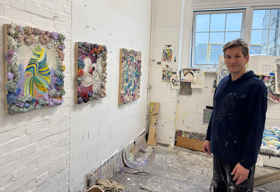 How do you work? The starting points of my paintings come from a few trajectories. The motifs are generated from many years drawing with felt pens on ivory card. This is a crucial aspect of my practice. I’ve collected hundreds of felt pen drawings over the past 24 years – a history of my own curiosities.