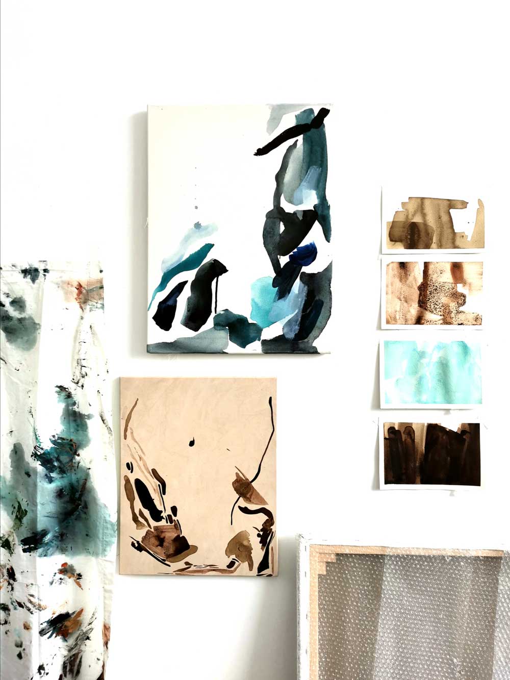 My work is site-responsive which allows me to work both in and outside of my studio. I spend a lot of time in nature; watching the shadows on mountains and the energy of the ocean. I am always looking down, underfoot, to see what kind of pigments and botanics I can forage. I’m especially drawn to rock pools at the moment. Some weeks I’m outdoors more and some I’m busy painting. The great thing with my work is that the simple act of going for a walk can result in new ideas or artworks.