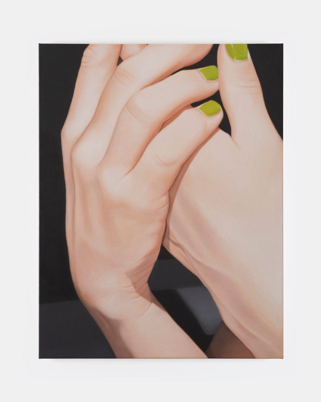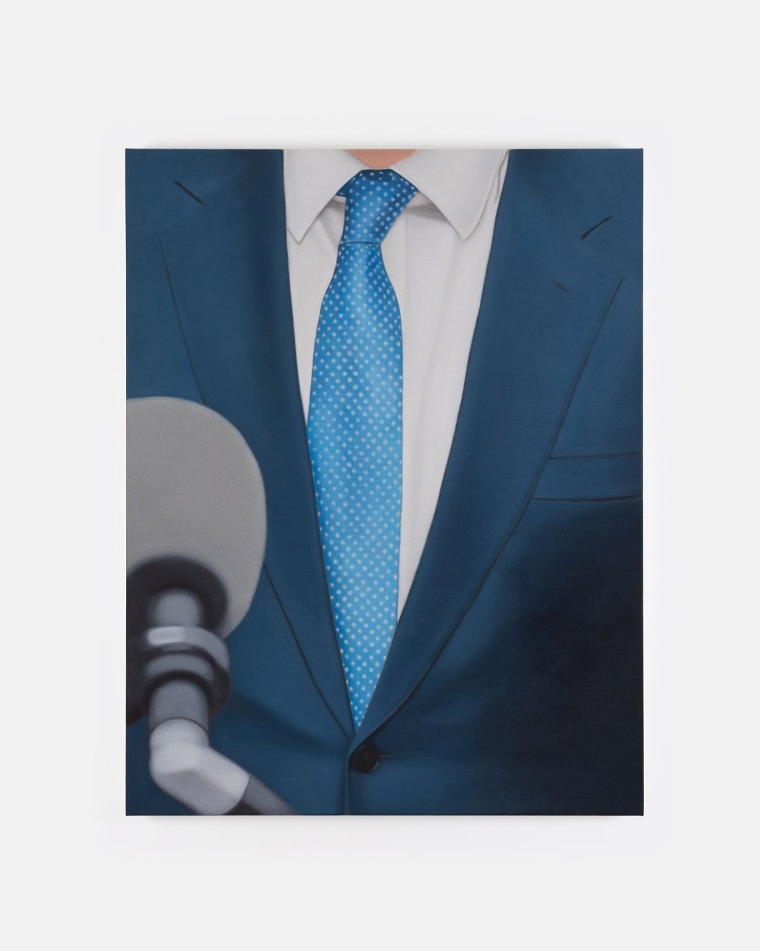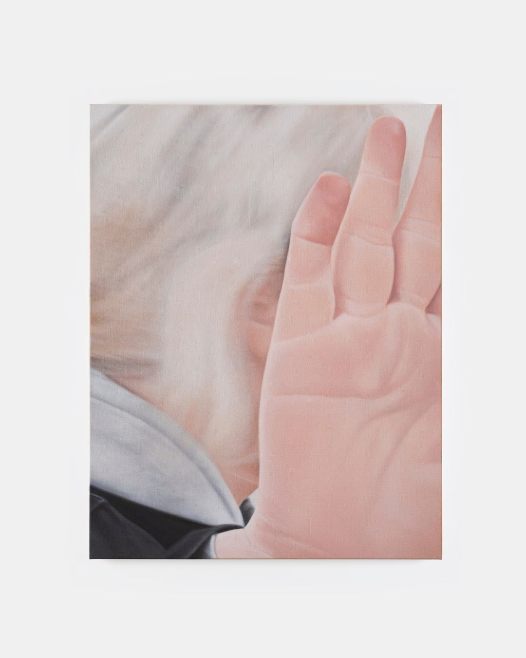 I work across painting and sculpture. My paintings are often derived from fragmented images: close-ups, cropped details or moments extracted from larger images. I’m interested in how composition and omission shape narrative. By restricting information and removing identifiable features, the paintings shift away from specific individuals and towards broader concerns around authorship, privacy and the construction of meaning in image culture.
