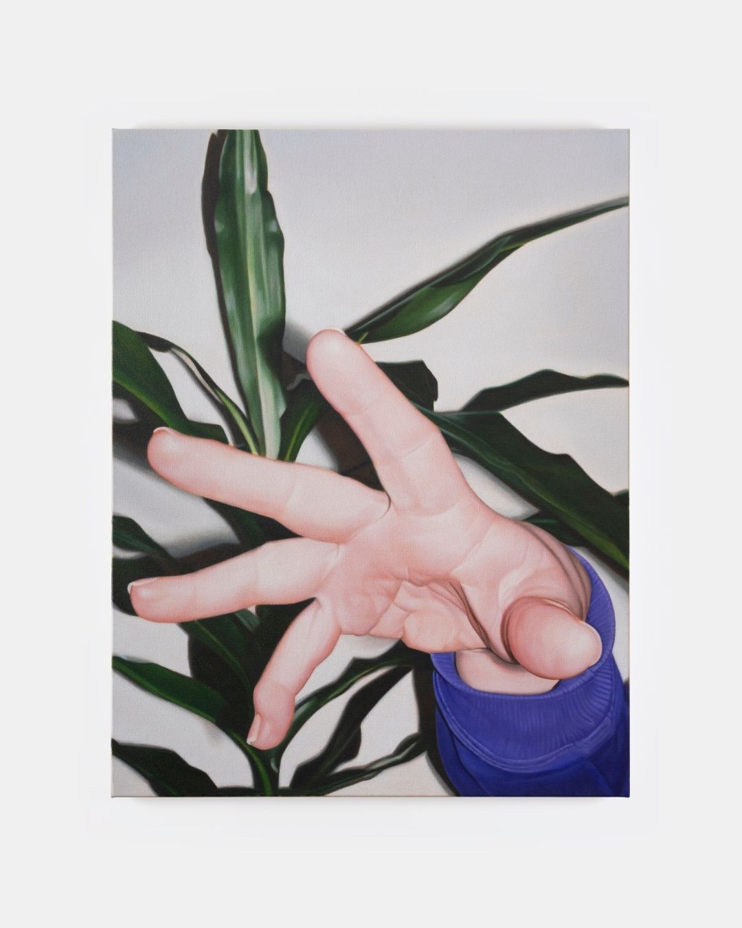 The starting point for my current exhibition at Kerlin Gallery was a series of close-up figurative photographic images, which I began working with during my residency at the RAH O’Malley Studios in Callan, Kilkenny. The exhibition continues my decade-long interest in painting composition and narrative, particularly how images can mislead, obscure, or suggest false readings depending on what is withheld. Translating digital fragments into painting allowed me to explore the shifting threshold between the virtual and the tangible. What began as a highly mediated image became something materially grounded, while still retaining a sense of ambiguity and surface illusion.