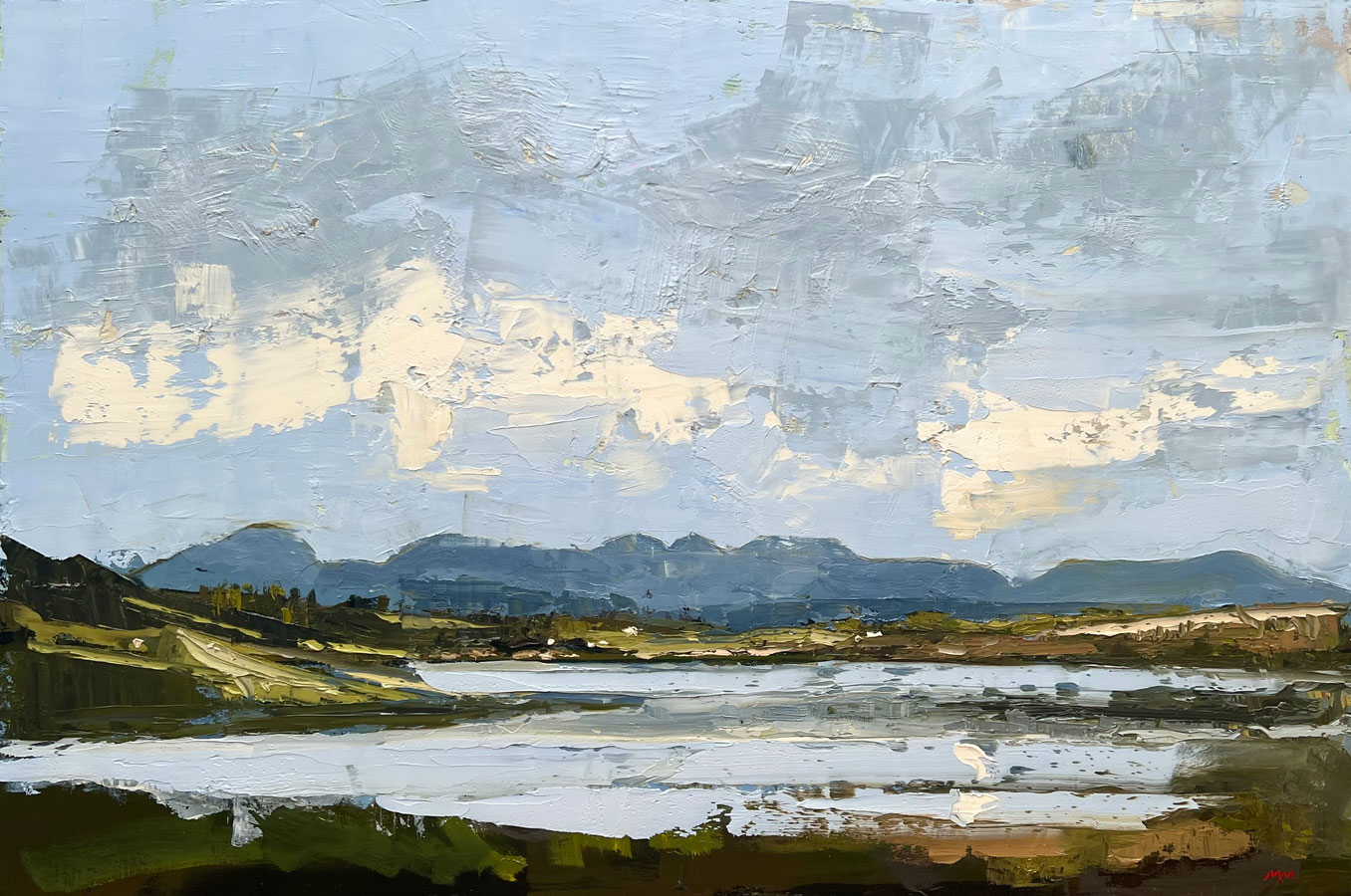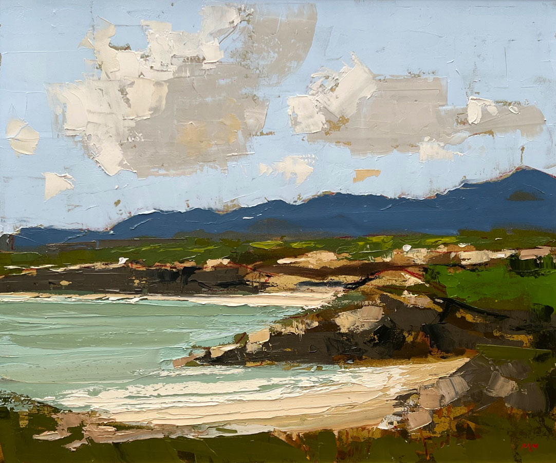 “Donegal has been the greatest inspiration for my work, especially landscape paintings. I usually like to work on a series of paintings, in that way I can move around and think about them as I go along. I often like to leave a painting for a period of time, then look at it again and sometimes rework it.”