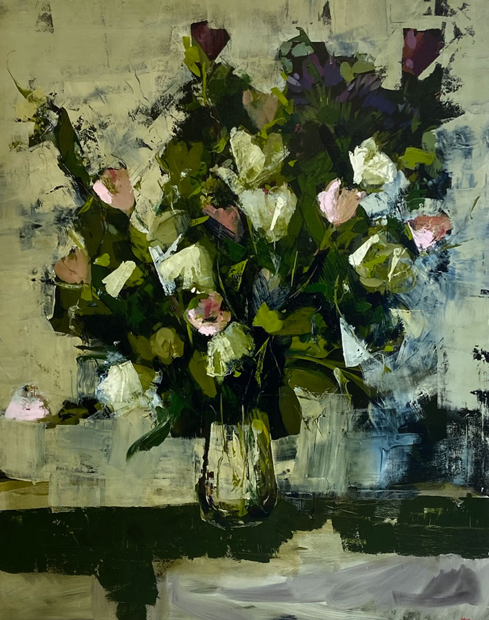 Mooney is also renowned for his still life paintings of flowers, which can be seen in the current Art & Soul exhibition, curated by Gormley’s at Culloden Estate in Co Antrim. He explains: “The still life paintings of flowers are almost always painted from life. Sometimes, however, I go back to rework them after a period of time, but this is generally to add something, not dramatically change the entire composition.”