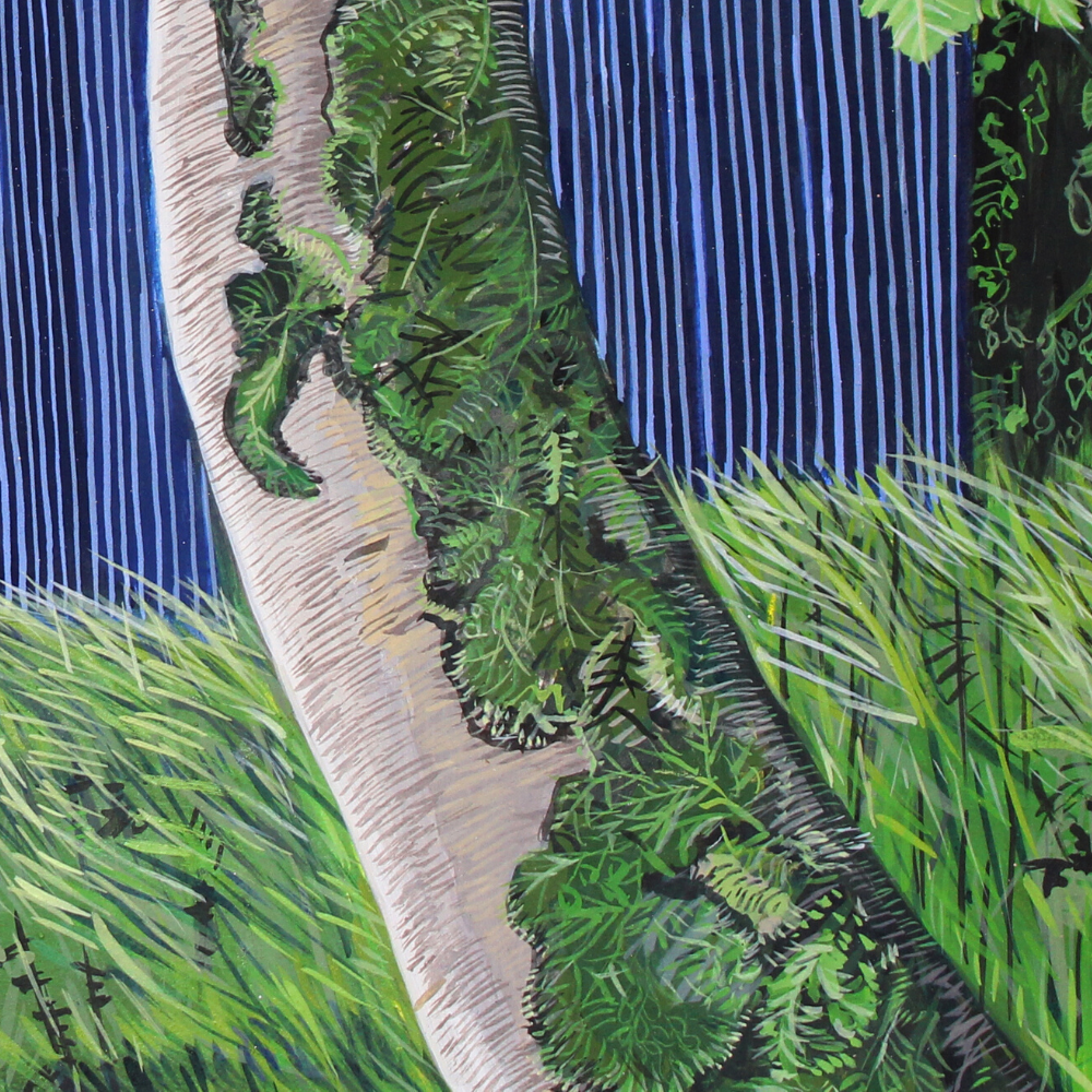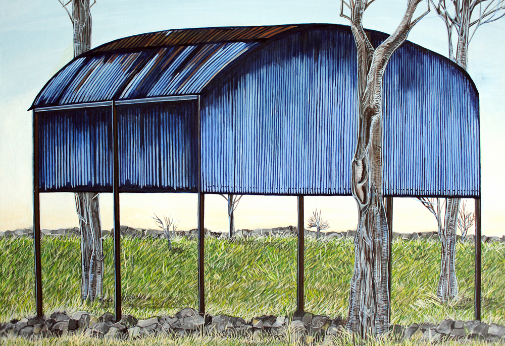 In 2018 I reviewed the nature and plein air paintings of German Expressionism of the 1910’s. I found the colour of the young August Macke, Paul Klee, Lyonel Feininger and the water colours of Emil Nolde both beautiful and inspirational. As a result I created a series of small and large coloured sheds in egg tempera. These man-made sheds and barns are juxtaposed with the natural world.