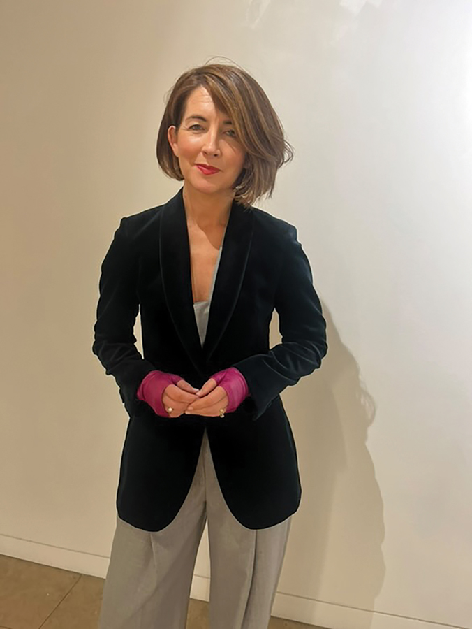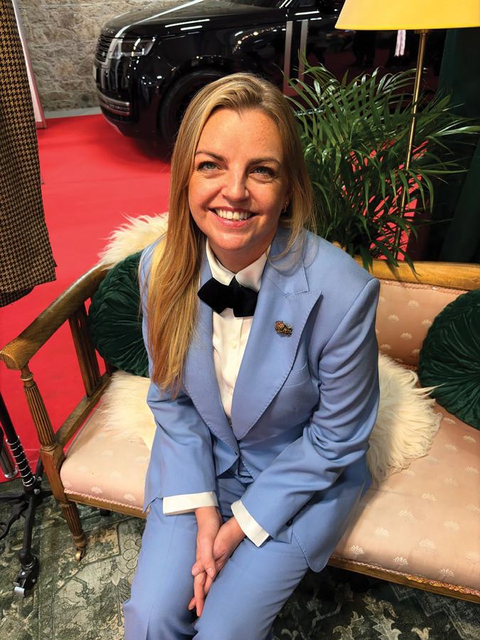 Aoife Dunican wears made-to-measure Magee 1866 velvet jacket.