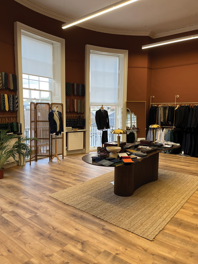 Commissioning a fully bespoke suit (for men or women) starts with a consultation to establish the design, followed by measurements and fabric selection. Olann Glas has over 1,000 fabrics to choose from (mainly sourced from British heritage mills – Magee is the only Irish fabric on their books). Jerome draws a sketch of the garment to give clients an idea of what their finished design will look like, before production gets underway. A second and final fitting takes place in the Pearse Street store. Bespoke two-piece suits take between eight and ten weeks to produce and cost from €1,590.