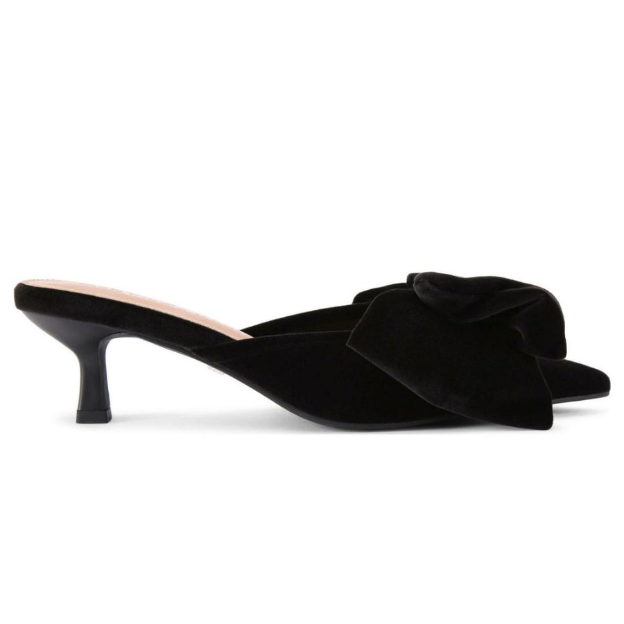 If you’re only going to invest in one item, a pair of velvet bow-detail mules will see you through party season each year. Black velvet Sophia heeled mules, KG by Kurt Geiger, €135, at Brown Thomas.