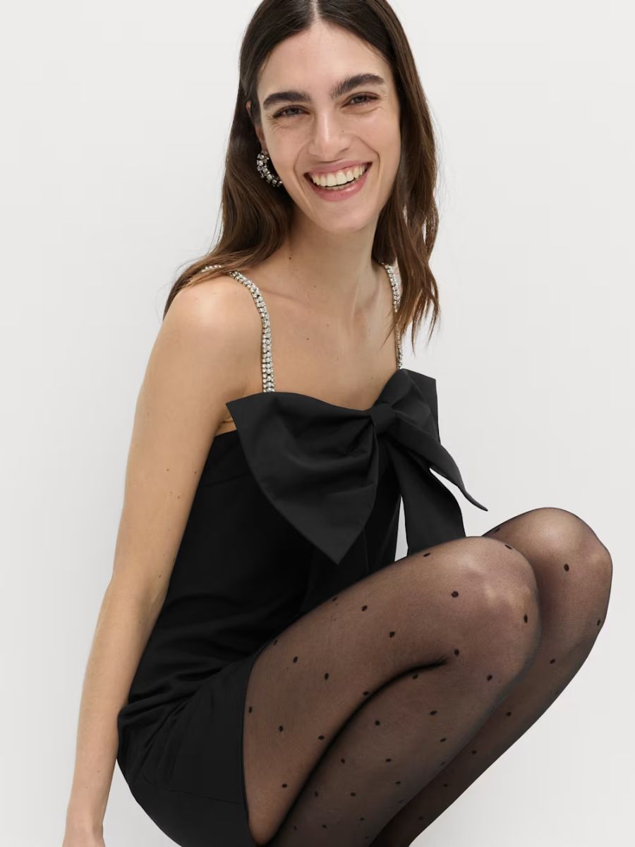 If you’re looking for a show-stopping dress, this might just be the one. Black bow-detail embellished mini dress, M&S Collection, €88, at Marks & Spencer.