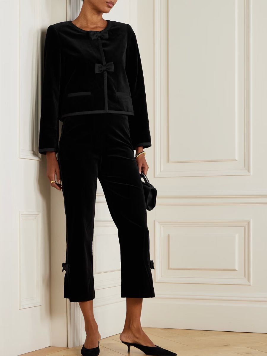 A black cropped velvet jacket is a trusty party season go-to. This one, by Australian label Posse, has edge. Black Quincy cropped satin-trim velvet jacket, Posse, €500; www.net-a-porter.com.