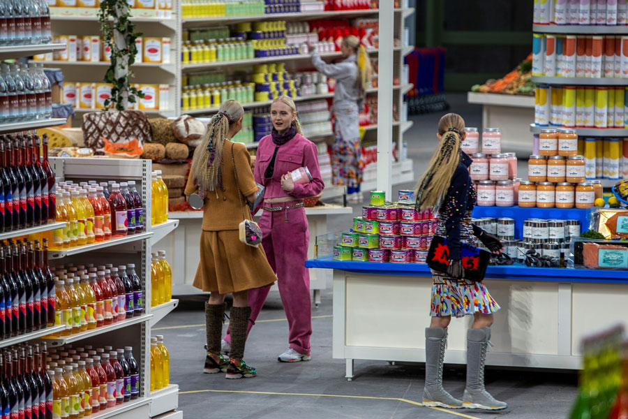 More contemporary footage is juxtaposed with film and photography from shows by Chanel, Dior, Gucci, Louis Vuitton, Prada, Alexander McQueen, Vivienne Westwood, Issey Miyake, Maison Martin Margiela, Yves Saint Laurent and Paco Rabanne. These include the stage props and accessories from Chanel‘s ‘Supermarket’ and ‘Rocket’ fashion shows, conceived by Karl Lagerfeld and staged at Paris’ Grand Palais.