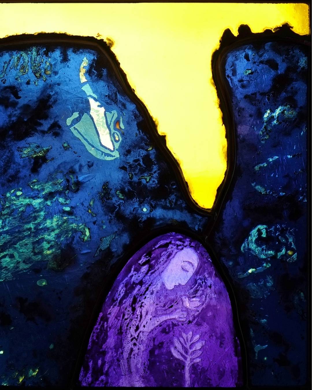 Having studied design and illustration in Dublin, and later undertaking a post graduate in Advanced Stained Glass Studies at Central Saint Martin’s College of Art & Design in London, Peter has been working with stained glass for over 30 years. Profoundly influenced by artist Cecil Collins, his work incorporates etching and painting processes applied to handmade glass, through which he achieves variations of tone and texture. Peter’s winning proposal was “Drawing Rain” inspired by Irish names such as ‘Spúrtach’ (splashing rain) and ‘Sánas’ (lull in a rainstorm).