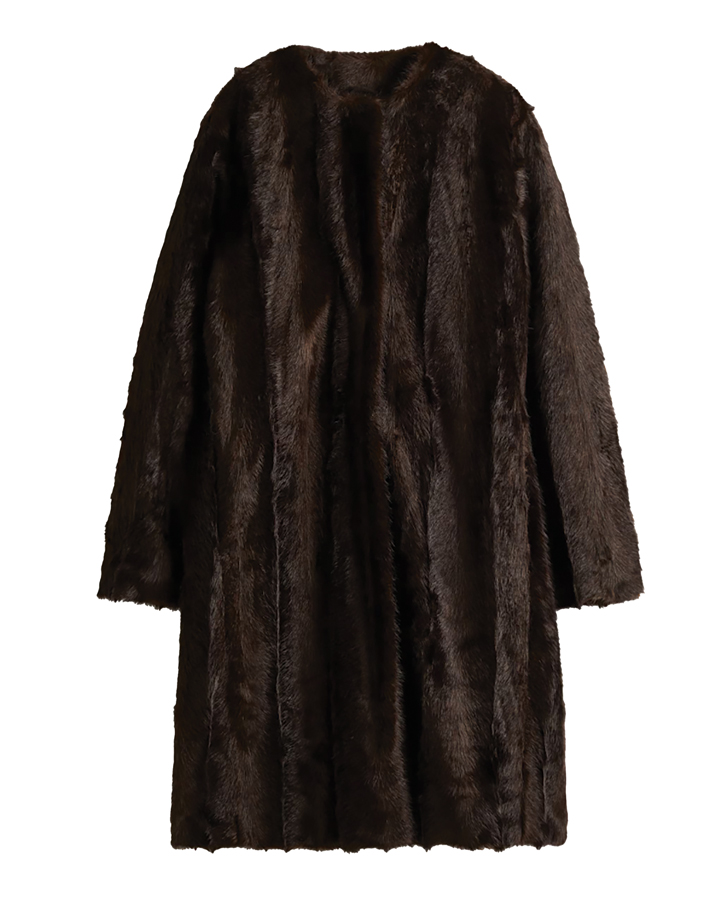 Dark brown merino shearling coat, €2,250; www.thelandskein.com.