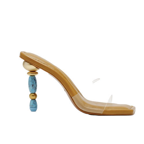 Nude leather sandals with embellished heels, €705 at Farfetch