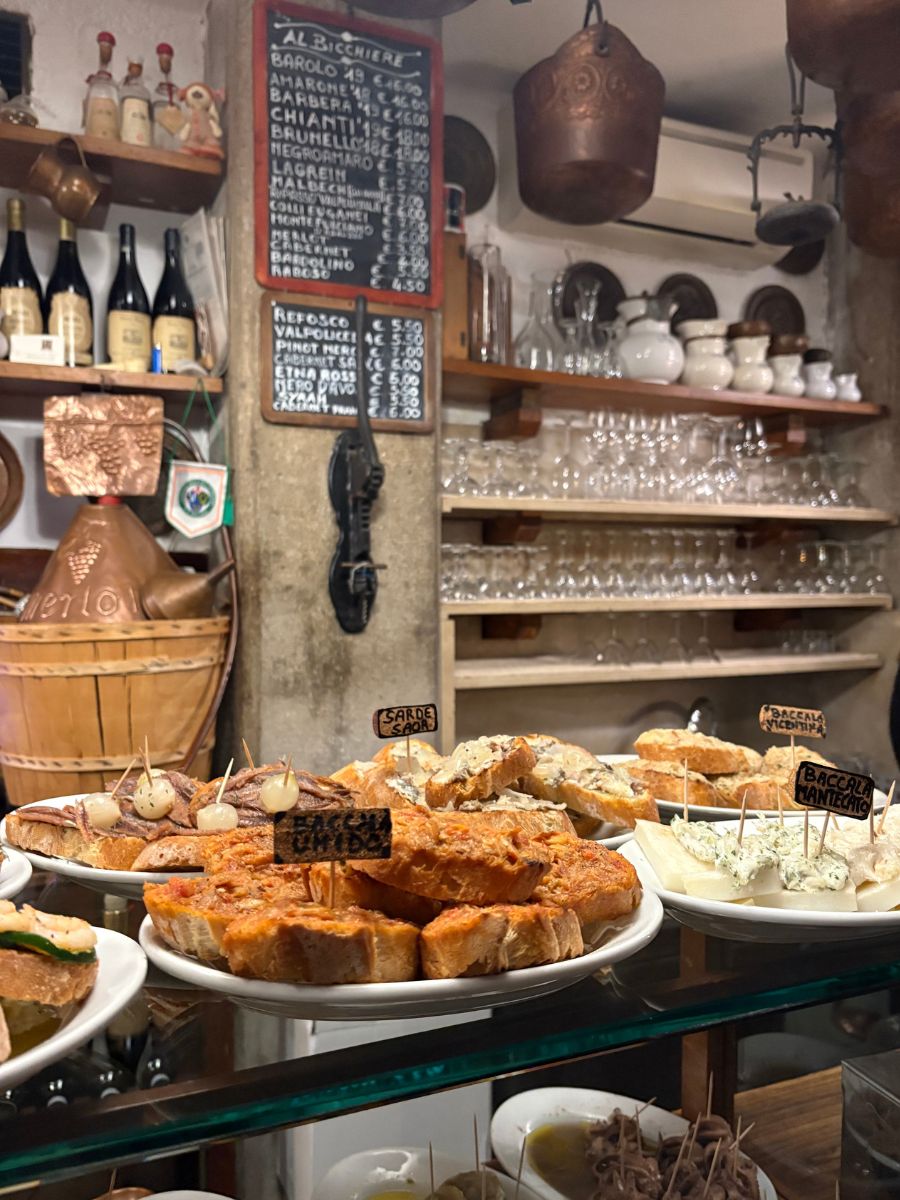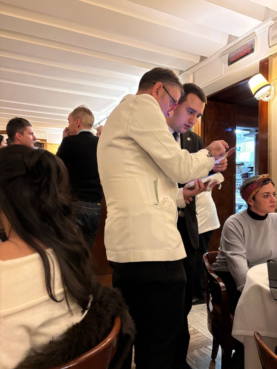 Harry’s Bar: Yes, the reviews are true: the food here is dangerously overpriced but you are paying for the vibes, which are at a premium. We arrived late, post-flight, and devoured the ragu, which was delicious. As well as admiring the waiters’ slick white dinner jackets, fellow diners resembled extras from House of Gucci, wearing horse-bit loafers and black turtlenecks, as well as decadent leather and shearling coats. Order a Bellini, or a glass of champagne, which comes in a chic coupe glass.