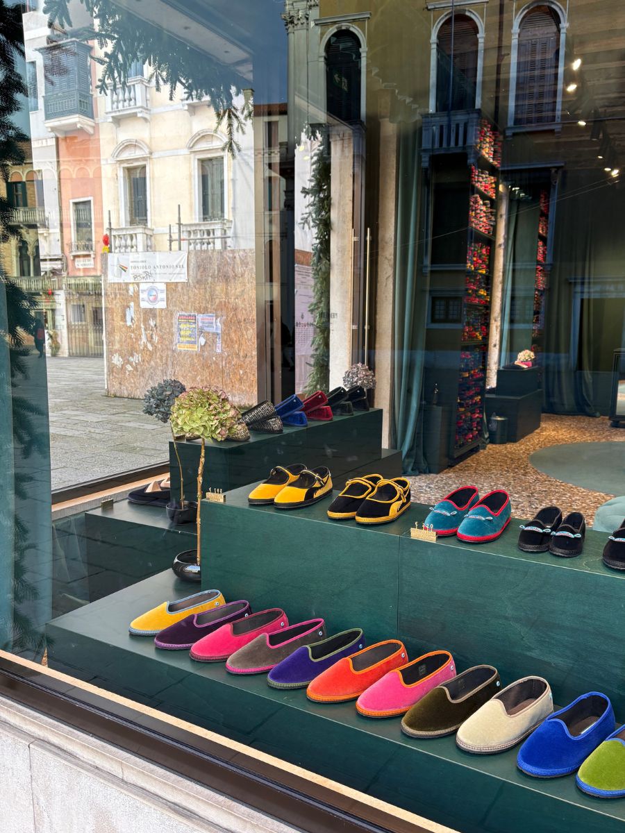Slipper shopping: The city is filled with tiny, chichi shops selling bags, hats, belts and the iconic velvet slippers of Venetian gondoliers. They range in style from golden hues and decadent burgundies to leopard print patterns.