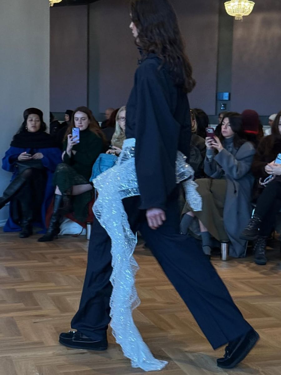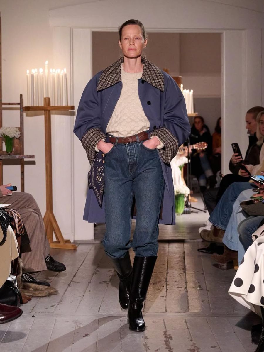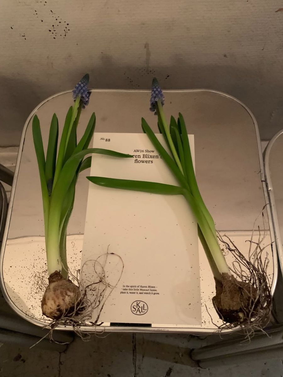 A true Copenhagen favourite, Skall Studio reimagined heritage for next season – think: barn jackets with XL lapels and glossy riding boots – but any notions of stuffiness were eschewed for an unabashed earthiness. The show took inspiration from literary sensation and author of Out Of Africa Karen Blixen; in a nod to the Danish author who famously loved flowers, muscari bulbs, still sprayed with moss, adorned attendees’ chairs at the brand presentation. Alongside beautiful floral corsages, we were taken by the do-it-all belts in rich conker shades from which hung bandana scarves and, even, small bags. We could imagine a pair of secateurs hanging from one of these leather belts, too: Blixen would approve.