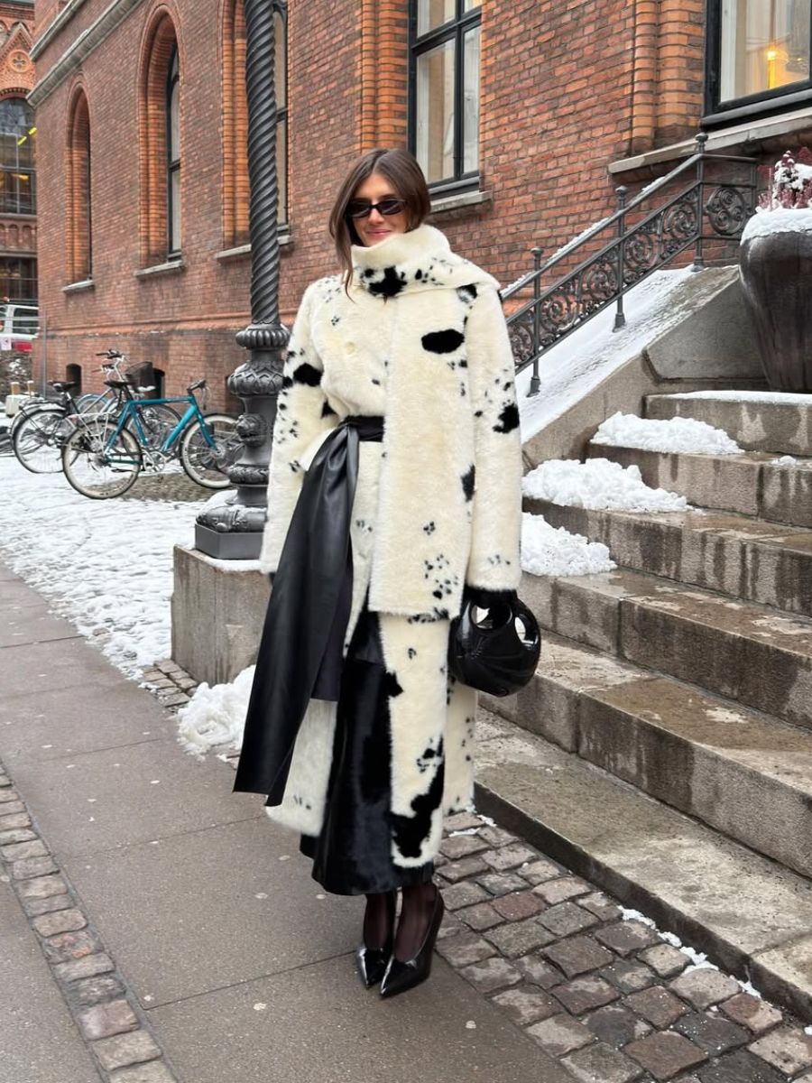 Teetering on the edge of popularity for the last few seasons, cow prints have a sleek appeal when splashed across extra long scarf coats. Do as the Copenhagen set does and keep the rest of your outfit effortlessly chic (that is: stick to black).