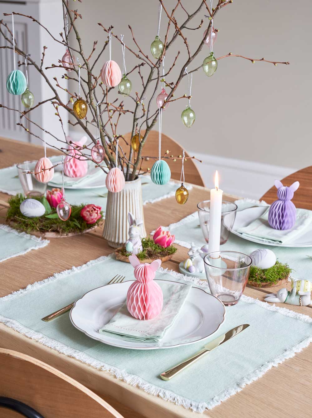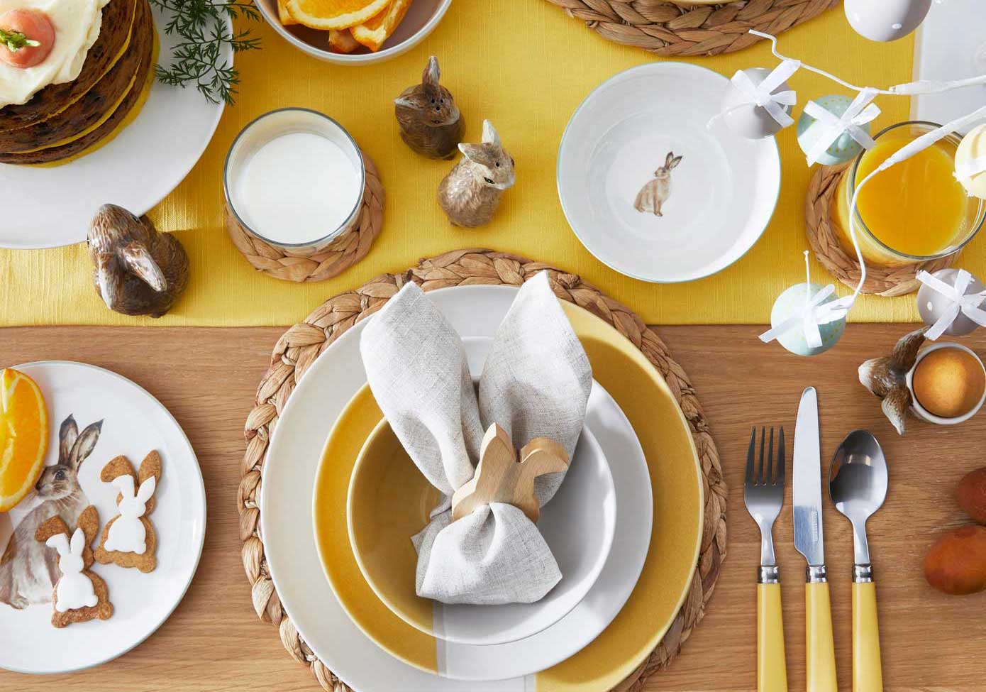 Regardless of its origin, the Easter bunny provides a fun theme to anchor a tablescape. In its simplest form, keeping an all white tablecloth and china on which Butler’s Chocolate Bunnies can sit always looks chic. For a more elevated version, china bunnies – from Herend’s iconic bunnies to Beatrix Potter Peter Rabbit figurines – also make good centrepieces. Many hostesses, including Mrs Alice, have been collecting bunny paraphernalia for decades. It’s always advisable to keep an eye out for bargain bunnies at flea markets, garden centres and also pick up collectibles and decorations from stores such as Søstrene Grene.