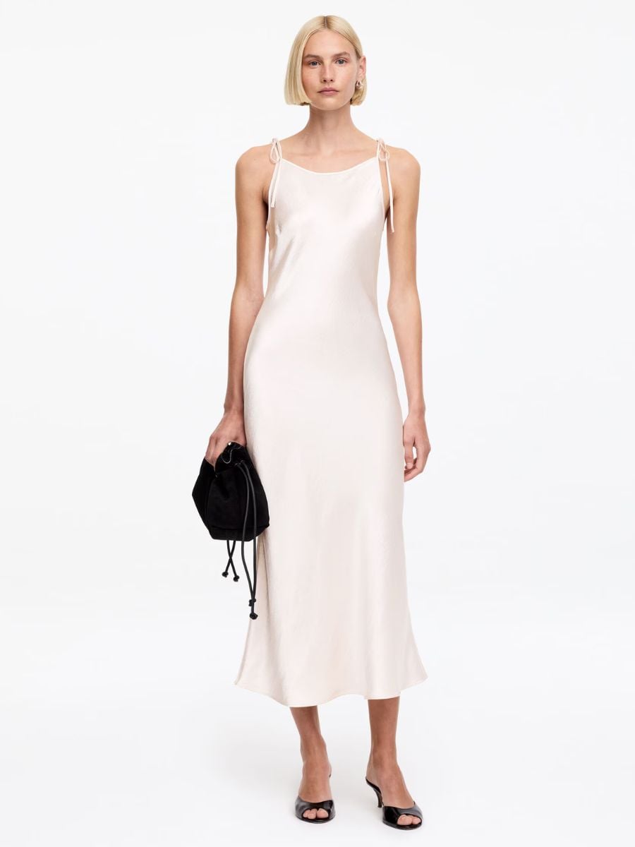 Light pink crushed satin slip dress, €89, at Arket.
