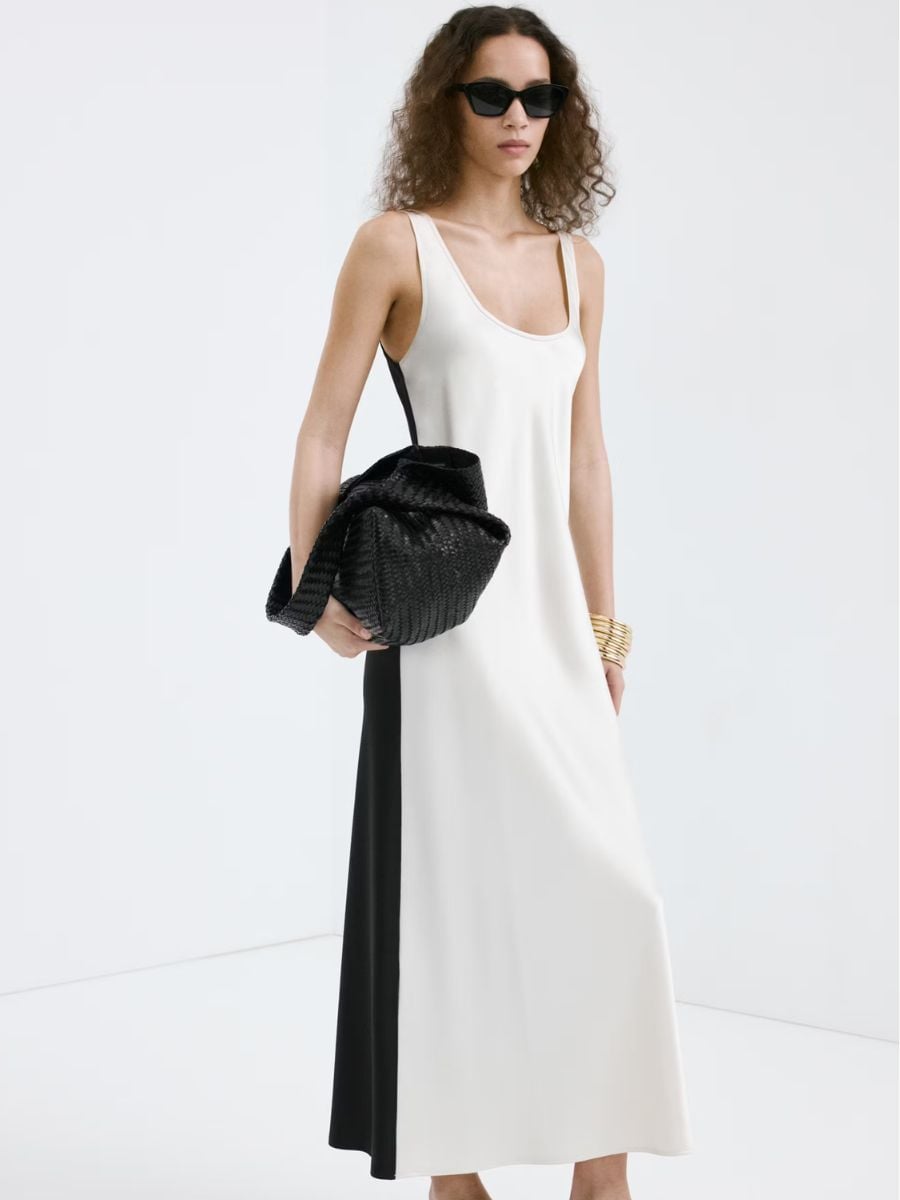 White two tone satin dress, €49.99, at Mango.