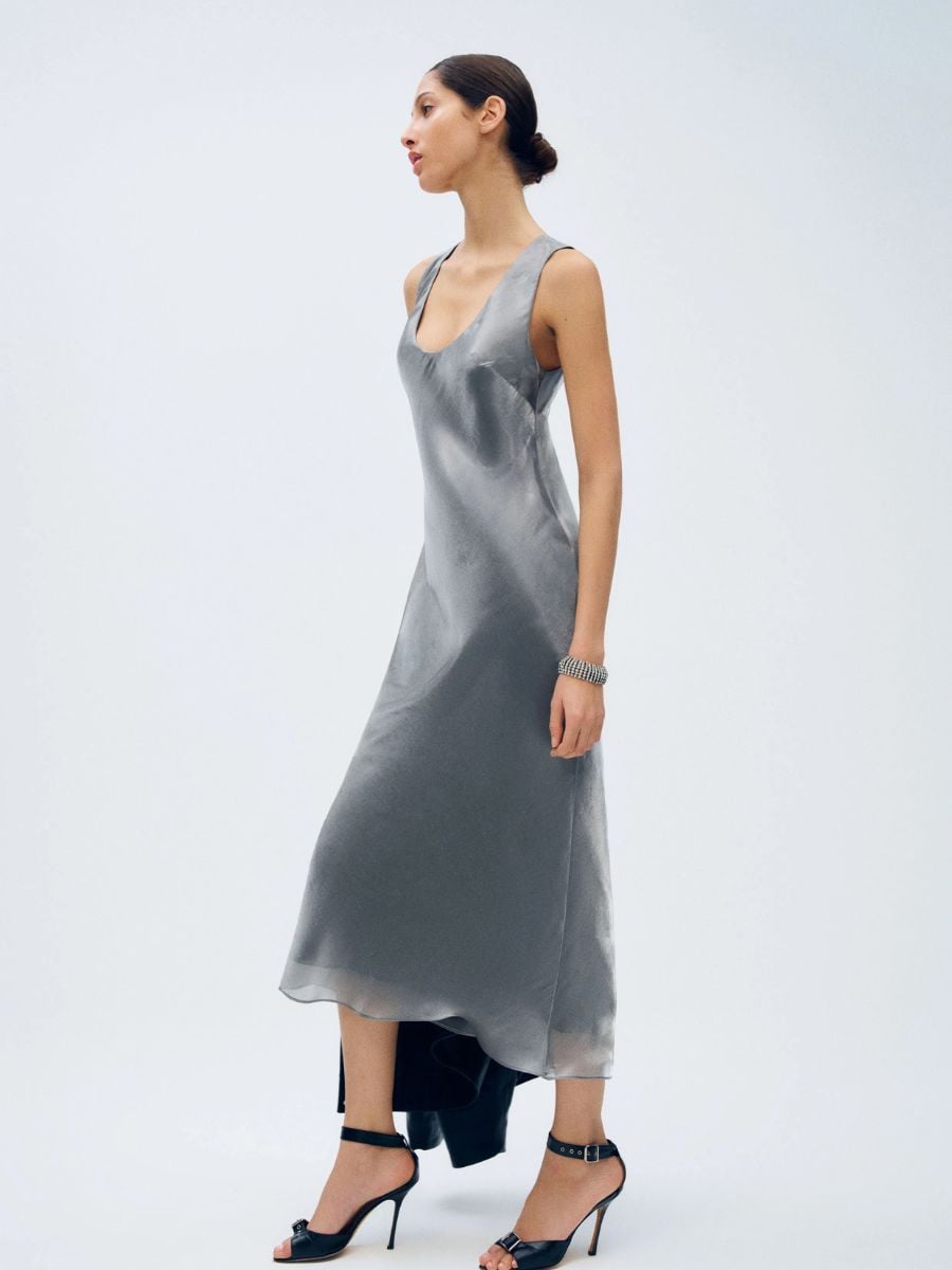 Chrome Soleia slip dress, €348; www.thereformation.com.