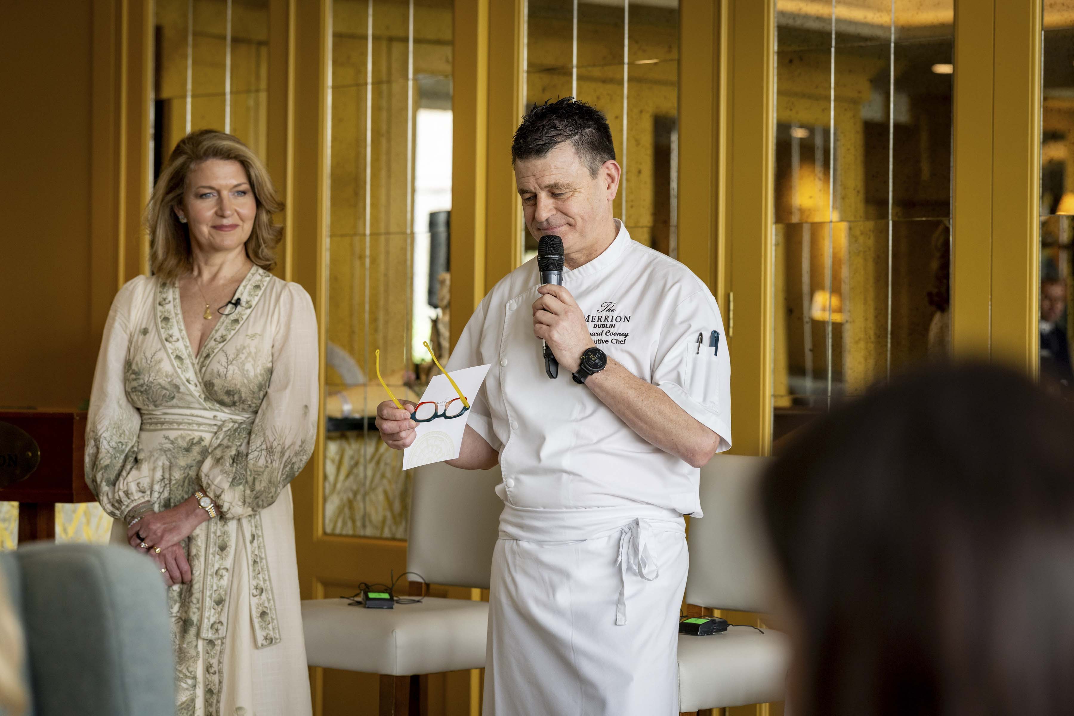 Before guests enjoyed a lunch of cured organic Irish salmon with avocado purée, radish, pink grapefruit and coriander cress; cornfed Irish Chicken Supreme with pomme fondant, charred baby gem, crispy pancetta, sweetcorn purée and red pepper salsa, Tara welcomed The Merrion Executive Chef Ed Cooney. Ed spoke to guests about the process of choosing your wedding menu and why you should put your trust in the experts: “My job is to guide, help and suggest. Ask all of the questions that you want – you don’t organise a wedding every day of the week, we do! We’re the professionals, so please ask any question.”